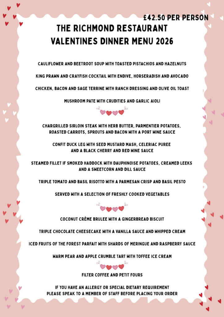 Friday 13th & Saturday 14th February – 3 course dinner